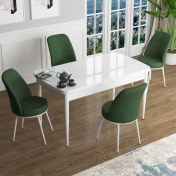 Avvio Lizy Beyaz Ptt Lake Mdf Kaplama 80x160 Yemek Masası Mutfak Masası Masa Sandalye Takımı Kadife Kumaş Beyaz