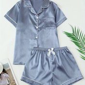 Kadınlar İçin Yazlık Düz Renk Buzlu Kumaş Kısa Kollu Şort ve Rahat Kazak Takımı, Yaka Detaylı, Kısa Boy, Günlük Tarz, Yetişkinler İçin İlkbahar/Yaz/Sonbahar