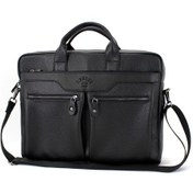 C160 Siyah Hakiki Deri Unisex Omuz Askılı Laptop, Evrak Çantası Siyah