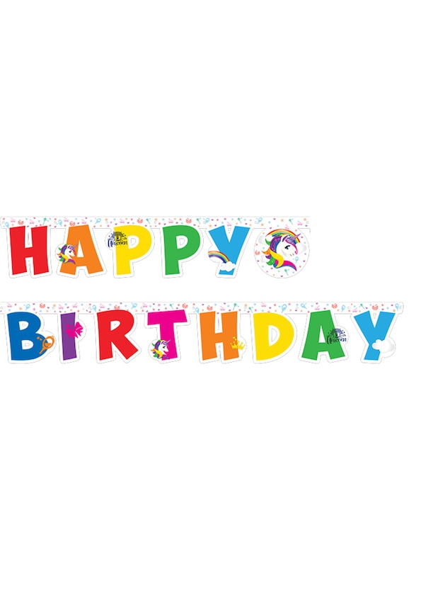 Unicorn Happy Birthday Yazısı Banner Parti Süsü Renkli Doğum Günü Afişi 200cm Tüm Yaşlar