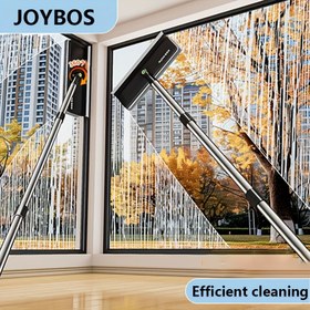 Joybos Çift Lifli Bezlerle 2'si 1 Arada Cam Temizleme Aleti, Paslanmaz Çelik ve Plastik, Her İki Tarafı da Kazıma ve Kurutma için Verimli Temizlik, Duvarlar, Arabalar ve Yüksek Pencereler için Esnek Döner Tasarım, Siyah