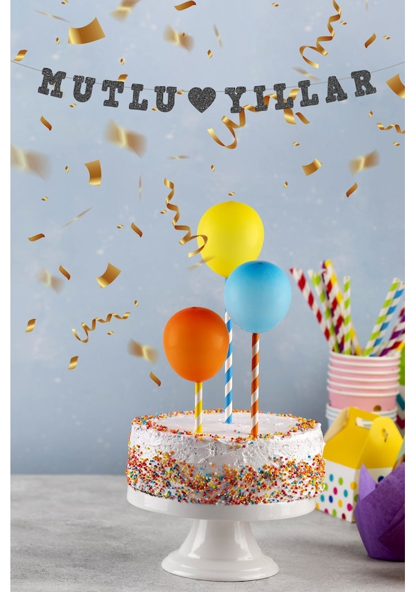 Siyah Mutlu Yıllar Yazılı Banner, Yeni Yıl, Doğum Günü Partisi, Simli Eva Banner Tüm Yaşlar