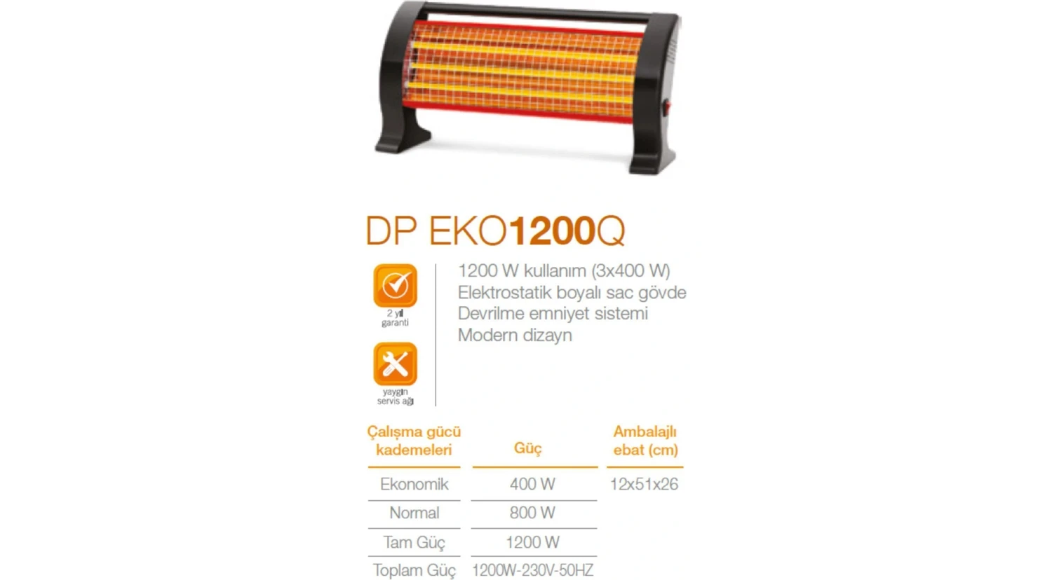 Eco Lounge DP-1200Q 1200 W Elektrikli Quartz Isıtıcı