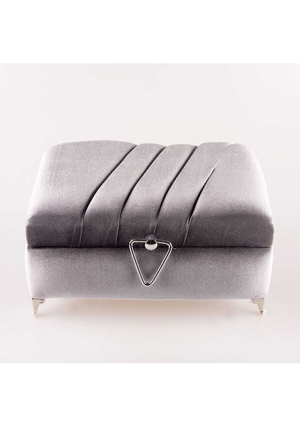 Çizgili Kutu Çeyizlik, Seccade + Tesbih + Kuran Hediye Seti Çanta Boy, Kadife, Gri, Elif-vav