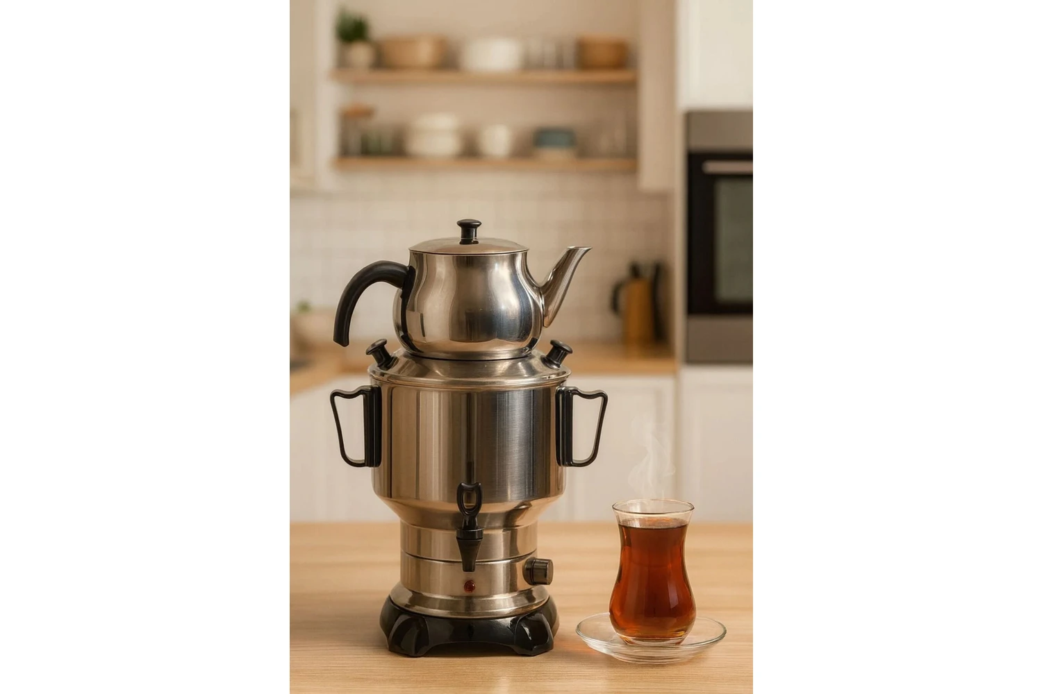 Armağan Çelik Kapaklı Semaver - 6 Litre - Gizli Rezistans - 430 Kalite Paslanmaz Çelik