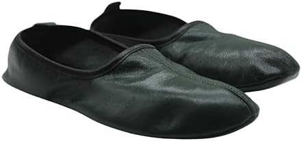 Kadın Kapalı Deri Terlik Koyu Yeşil Geleneksel Babouche Ev Ayakkabıları Yalınayak Mokasen Tai Chi Ayakkabıları
