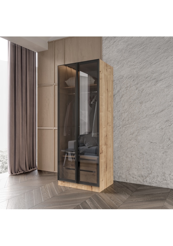 Altay 2 Çekmeceli Giyinme Dolabı Led Askılıklı Tamamı Mdf Füme Camlı Safirmeşe