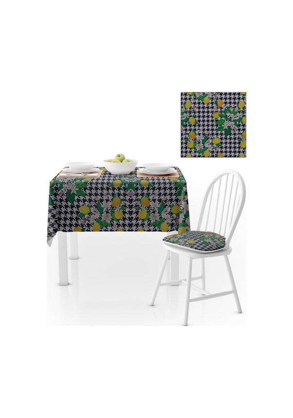Limon Ağacı Desenli Dijital Baskılı Petek Dokuma Masa Örtüsü 140x140