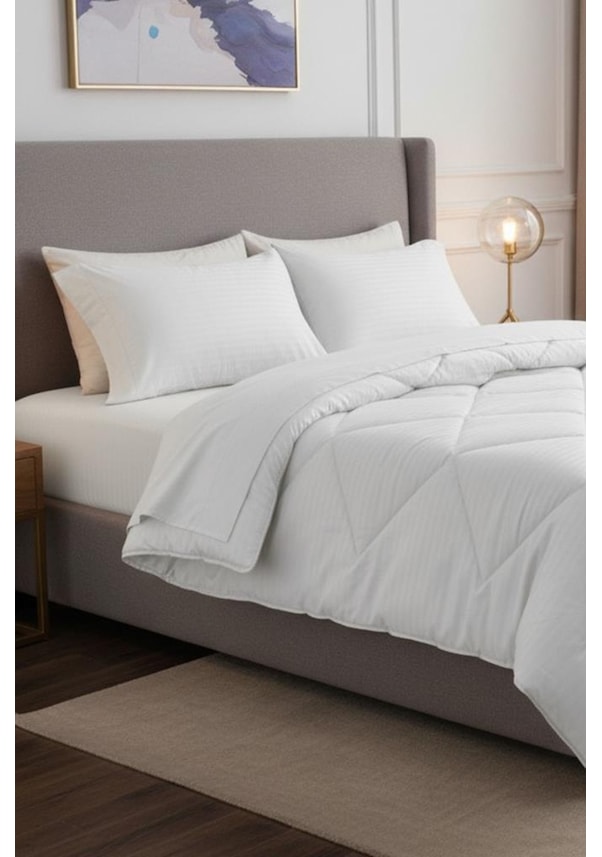 Satin Pollysaten Comforter Çift Kişilik Yorgan Seti Beyaz Beyaz