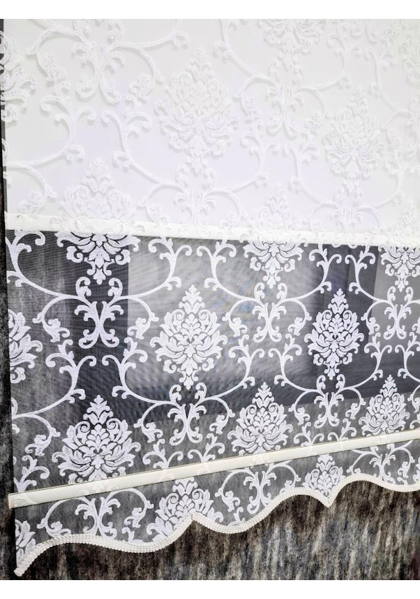 Bbb Simli Damask Desenli Çift Mekanizmalı Tül Stor Perde Ekru Mt1018s Ekru