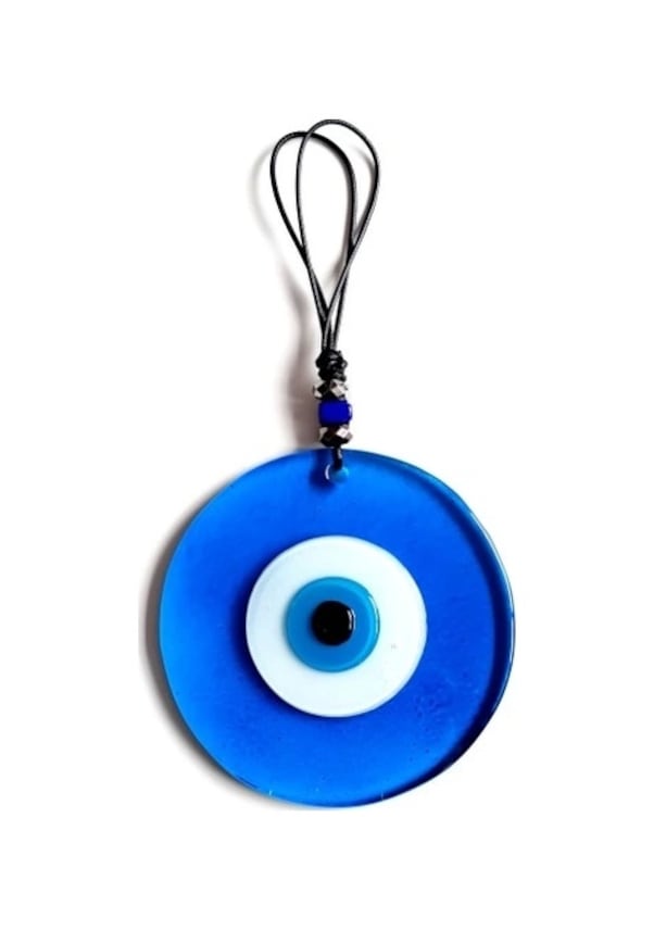 Nazar Boncuklu El Yapımı Deri İpli Açık Mavi Şeffaf Cam Duvar Süsü