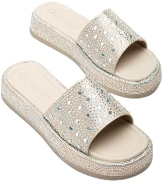Kadın Dolgu Topuklu Terlik Bej Kalın Tek Bantlı Taşlı Tokalı Taban Sargılı