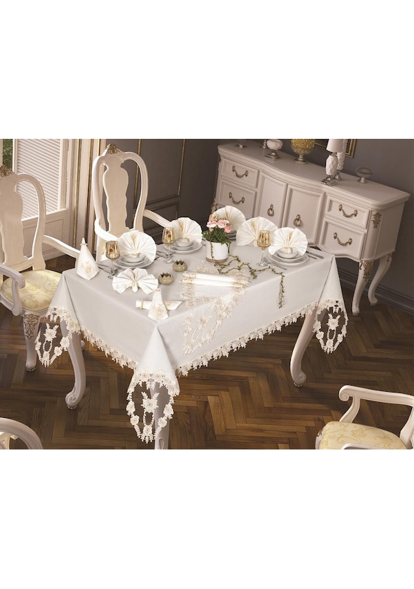 Daisy Love Masa Örtüsü 160x220 Cm 26 Parça Krem Krem