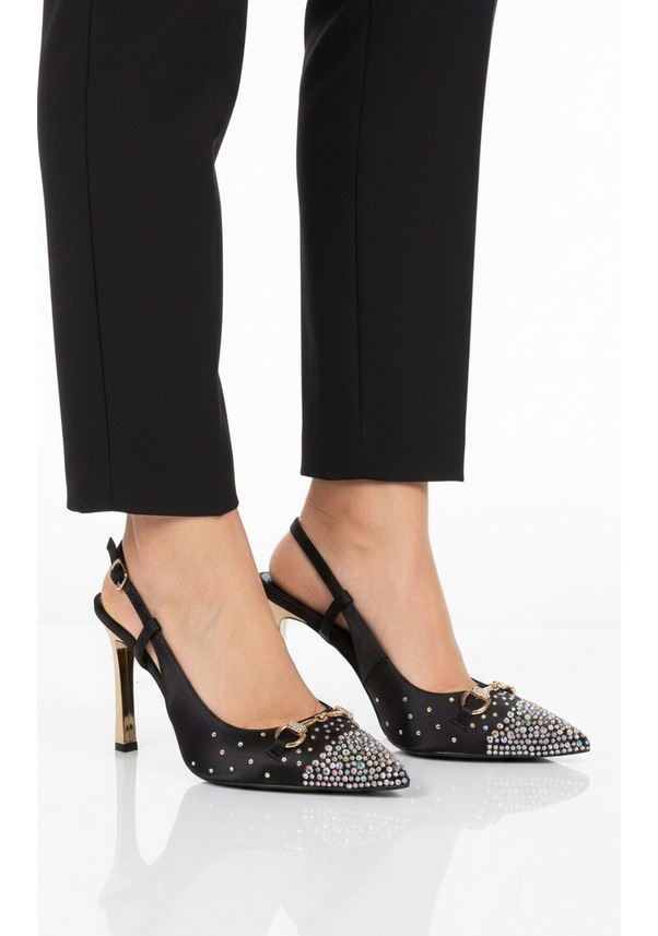 Siyah Saten Taşlı İşlemeli İnce Uzun Topuklu Kadın Abiye Ayakkabı 298248 Z Siyah