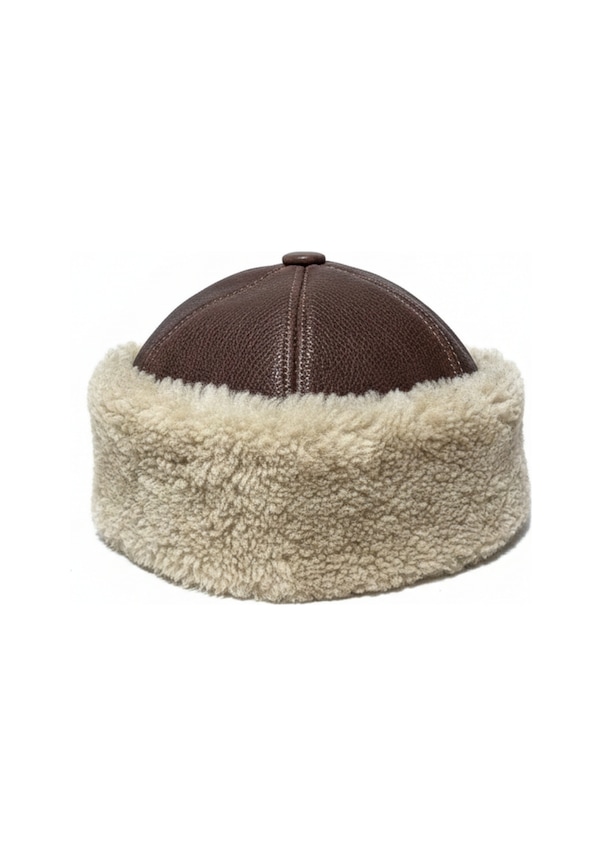 Okcubaba El Yapımı Hakiki Deri Kürklü Kahverengi Börk - Soğuk Geçirmez Geleneksel Başlık