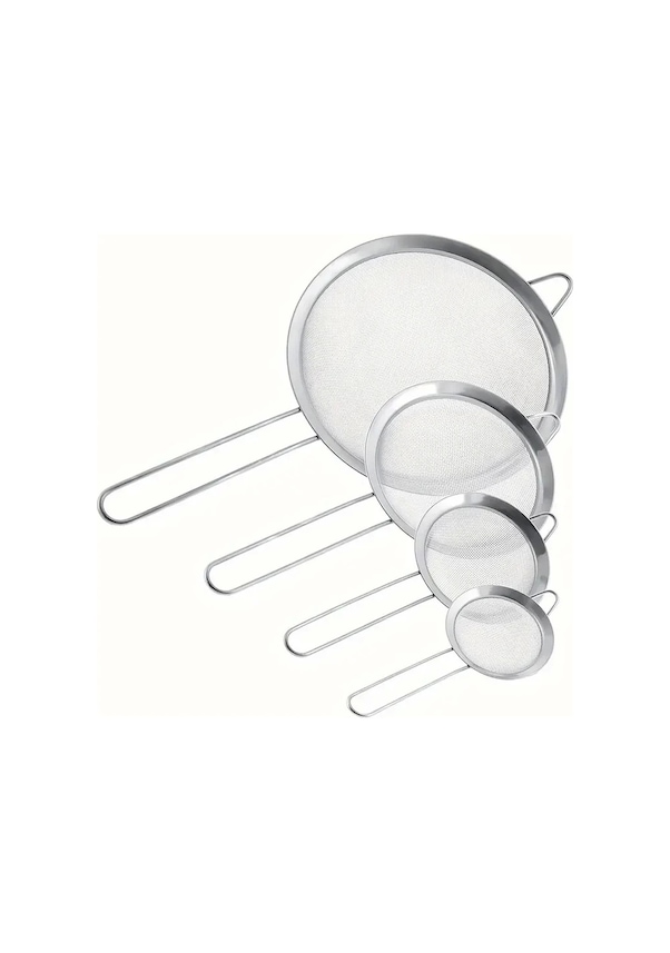 Mybru Paslanmaz Çelik Pratik 4'lü Çay Süzgeci Sebze Makarna Un Süzgeç Metalik Gri