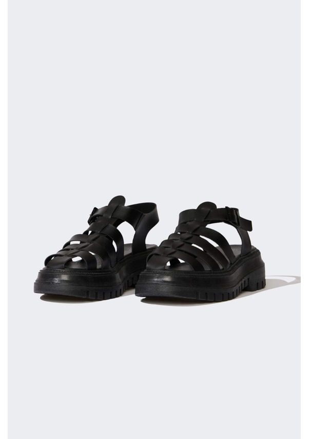 DeFacto Kadın Yüksek Taban Suni Deri Sandalet C3725AX25SMBK26 Siyah