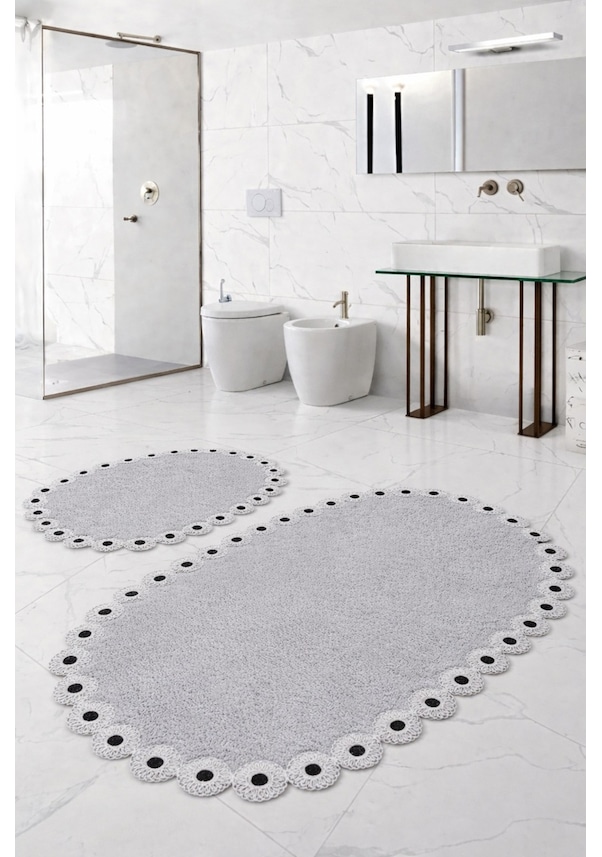 Gülruba Oval Beyaz Çeyizlik Dantelli 2'li Banyo Paspası Seti Kaymaz Tabanlı Klozet Takımı Beyaz