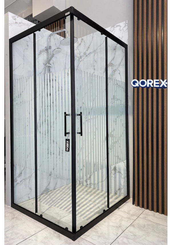 Ustaduş - Qorex Marka - Siyah - 6 Mm Temperli Kum Cam Duşakabin H:190 Özel Seri Krom Aksesuar 2 Diğer