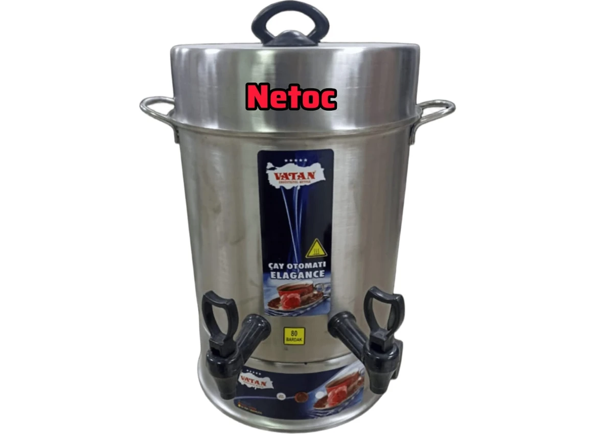 Netoc Vatan Elektrikli Çay Semaveri 80 Bardak Kapasiteli Çaycı Çelik Çift Musluklu