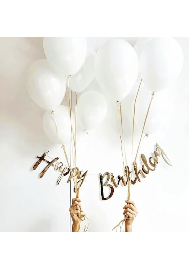 Gold Happy bırthday kaligrafi banner 8 adet pastel beyaz balon se