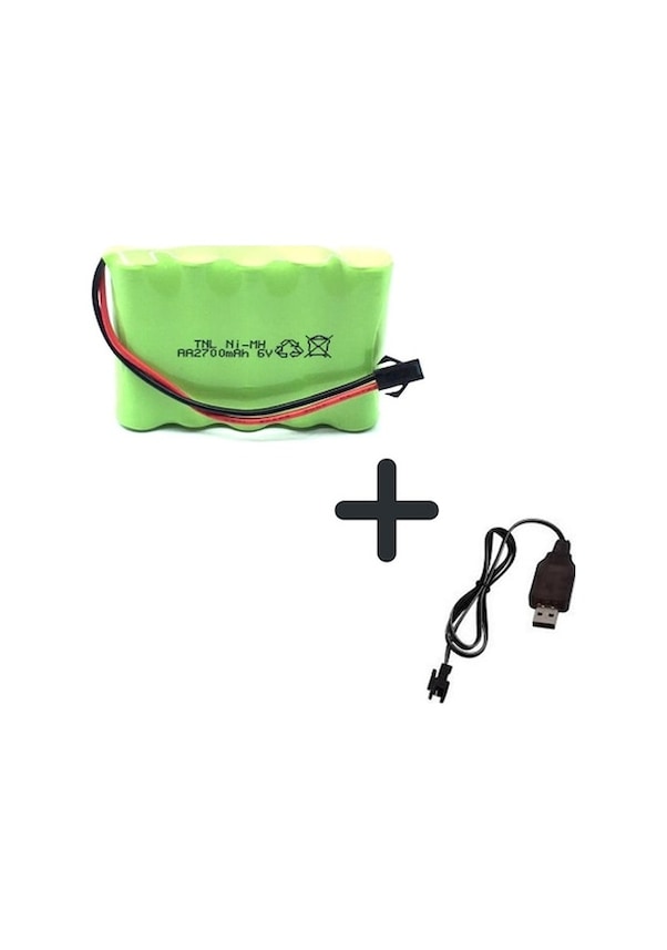 6V 2700Mah Oyuncak Araba Bataryası Siyah Soketli+Usb Şarj Cihazı