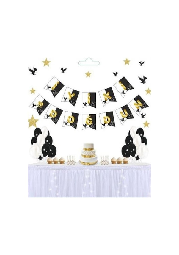 Beysüs Siyah Beyaz Üstüne Gold Altın Yaldızlı İyiki Doğdun Yazılı Karton İpli Yazı Banner