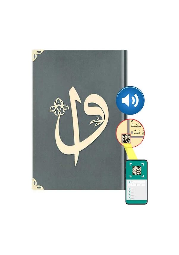 Rahle Boy Kadife Kuran-ı Kerim (K. Gri, Elif-Vav, Yaldzlı, Mühür)